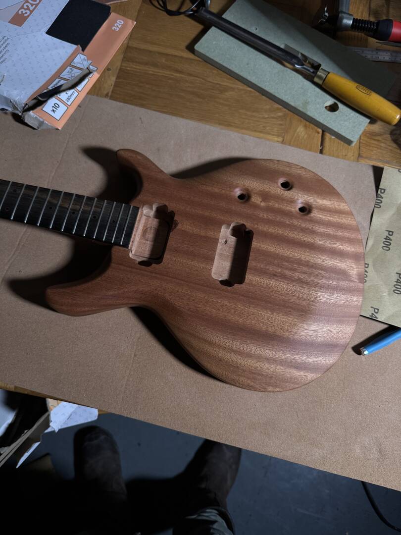 I also laminated 2 bits of sapele Veneer together 1.5mm (3mm thickness overall) which seemed ok but it went bent/curved in a couple of days so this needs to be thicker too grrr!