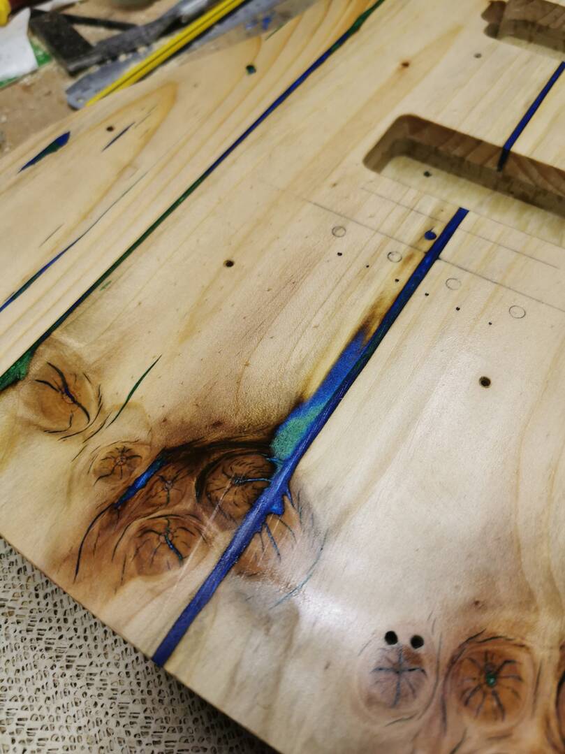 I’ve been playing around with dyes and sanded back in between coats. I’ve blended the colours, black, orange and yellow and I’m now happy with it. The first coat of dye always looks really bad to me, quite tacky looking. After a bit of work, it always comes good and starts to look a little more classy.