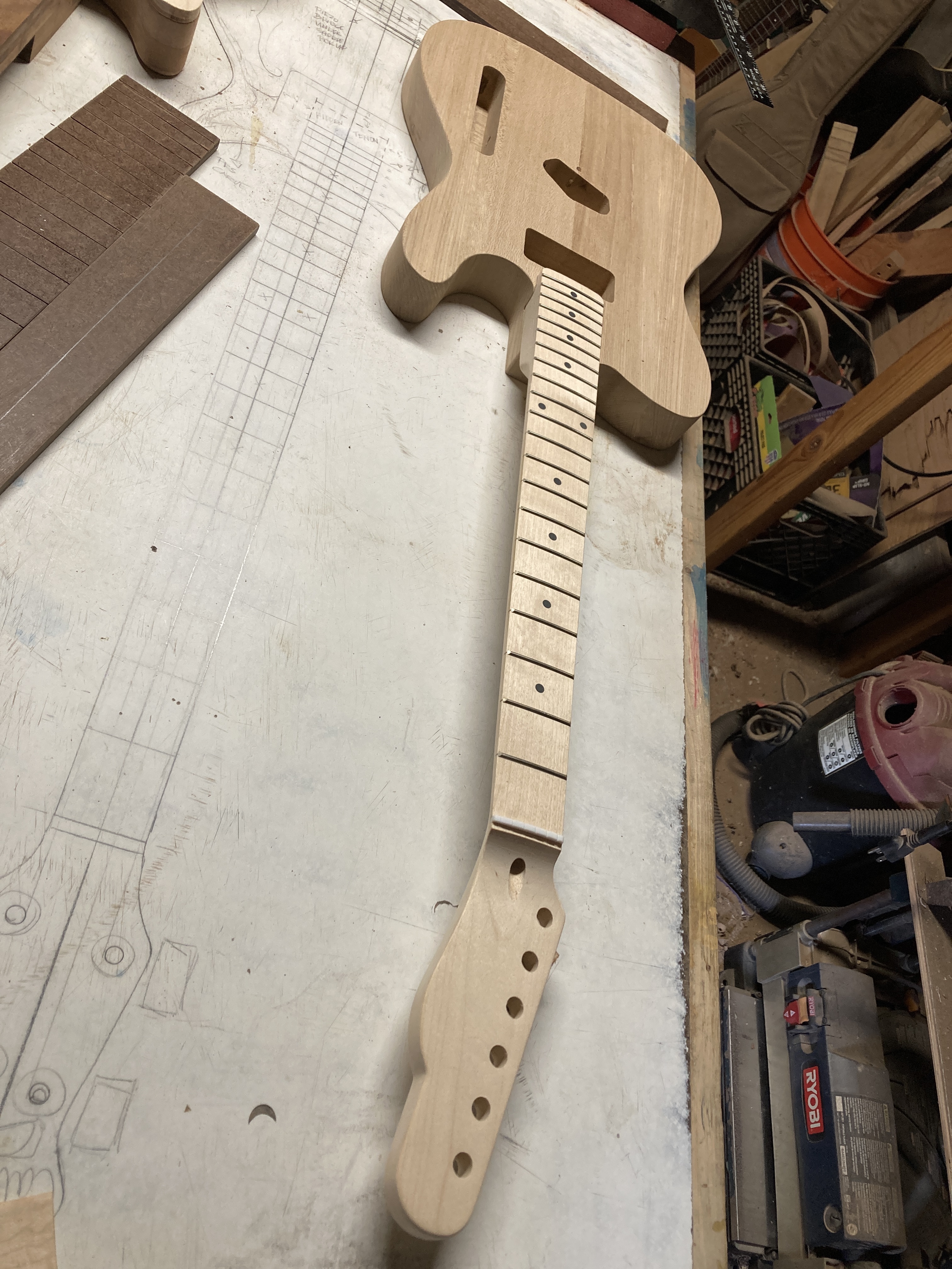 Made my first bolt on following the bolt on course. Just had to do it after watching the recent you tube live streams, I decided on 21 frets. Haha. Access to truss rod however, I opted by the headstock. Been itching to make a Tele just so I know I made one. Just realized however, slipped my mind I did not