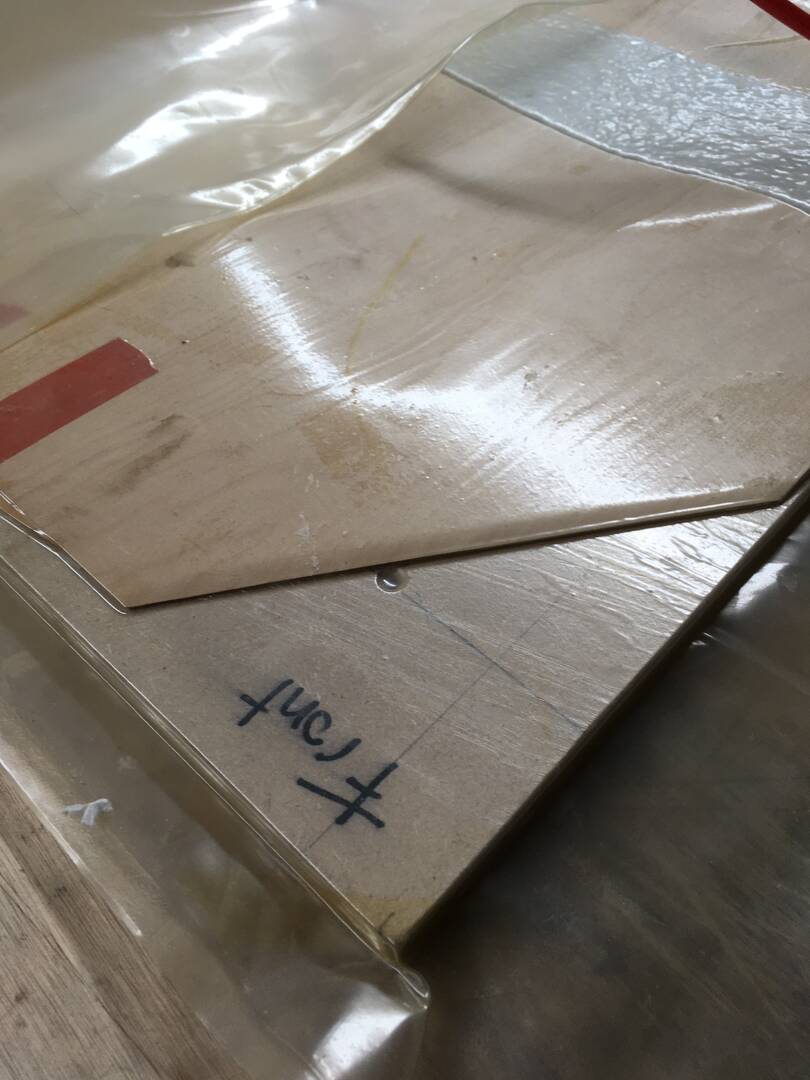 As with the back, I sprayed the face veneer with water, put it in a bag and left it to soak quietly for an hour in the Bailey moistening room.