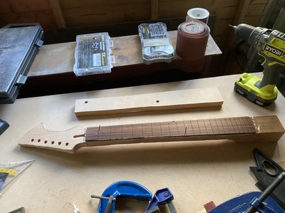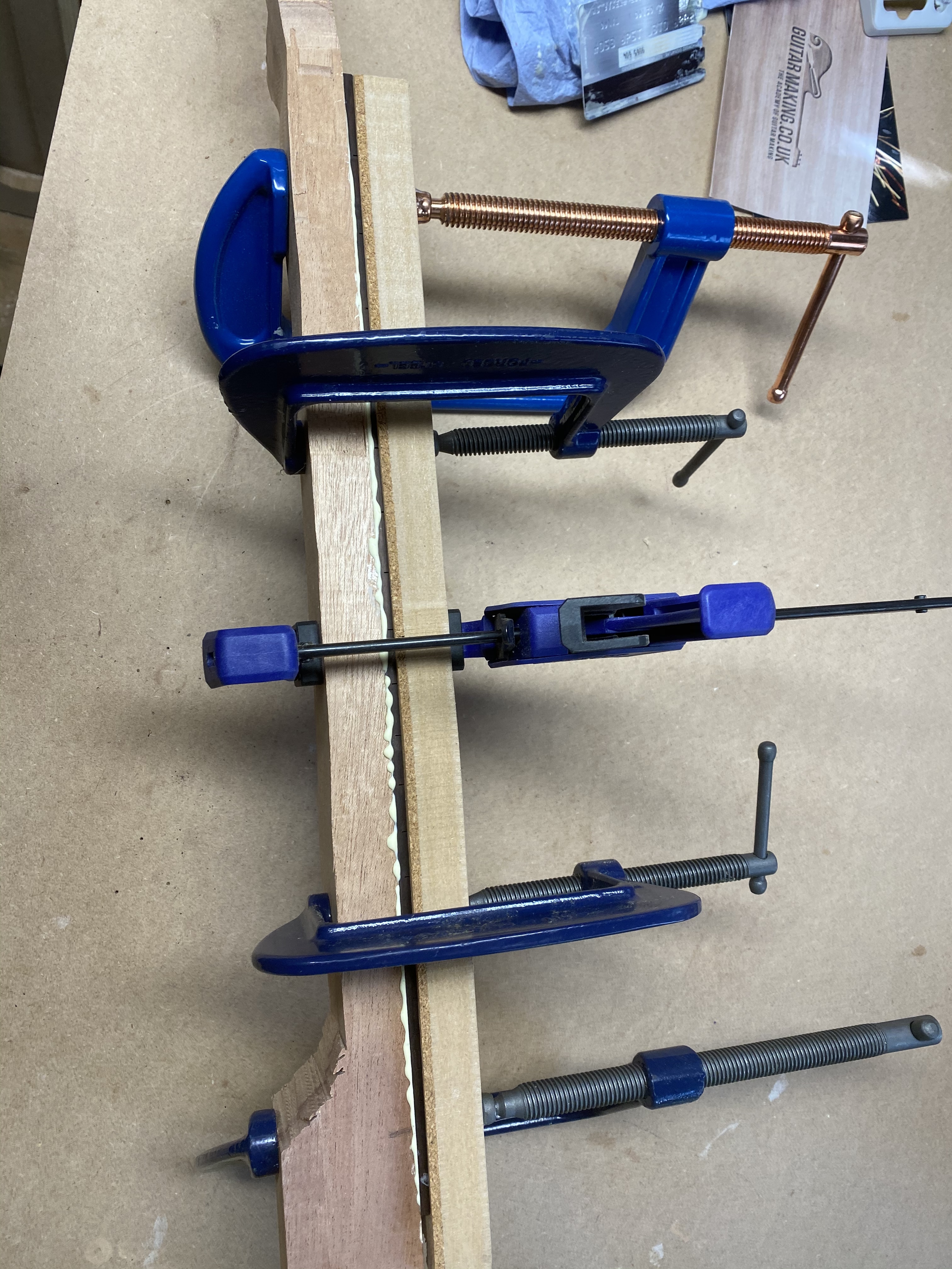 In all honesty I think the amount of glue was fine and the clamping pressure was firm but not wood crushing @mattbeels, I don't know maybe you can tell from the squeeze out on that photo. I genuinely think I just shit myself as this was something I've been stressing about getting wrong and I don't think I found the nail hole on the 10th fret when I lowered the fretboard onto the neck. That on top of worrying about getting glue on the fretboard when I was lining it up but I'll definitely be more confident next time.