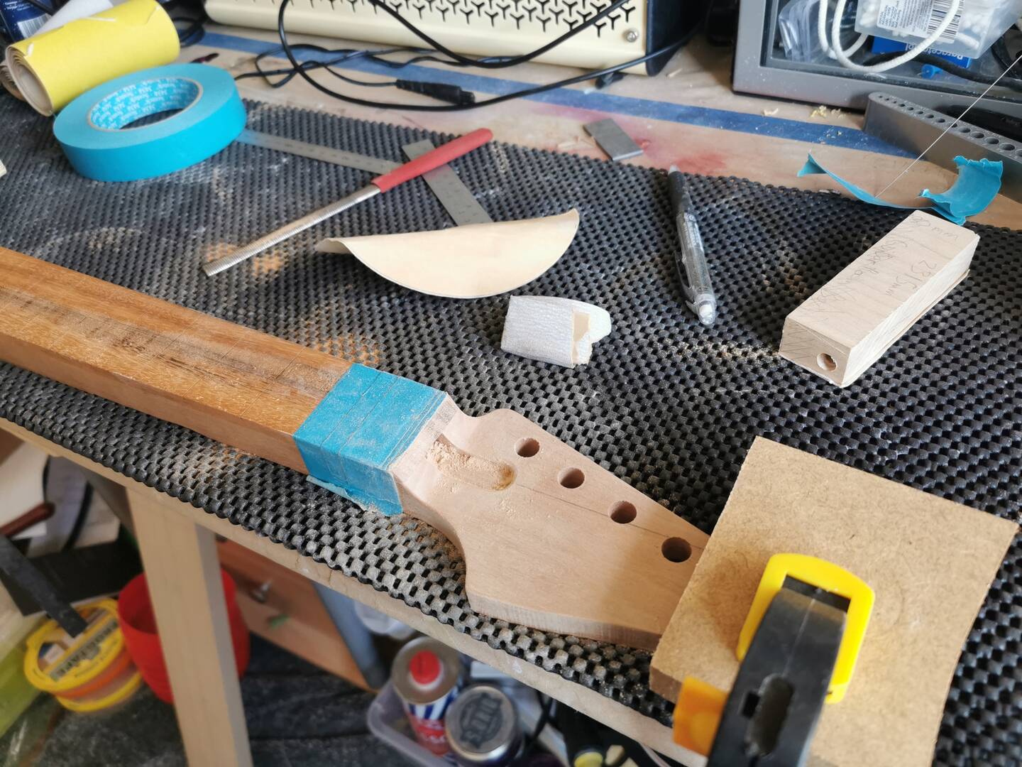 @boo The fretboard is rosewood. I am planning to do a semi-hollowbody, loosely based on the Bandsman shape. The first build turned out very heavy, so why not try a variation with a thin top and some routing? Plenty of time to decide on the body, though. I'm starting with the neck, 24.75" scale.
