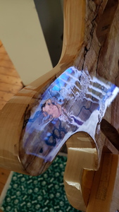 Today I have flattened the lacquer down to P600 grade, I’ll probably finish with P800 before relacquering. I did the top and back today and got rid of most of the imperfections that I was worried about. In these pictures you can just see the problem areas but I am confident I can fill them in with more lacquer.
