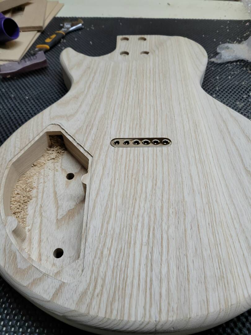 Hopefully I should manage to get a lunch break this week, so I'll do the pickup cavities and drill through for the various wires.