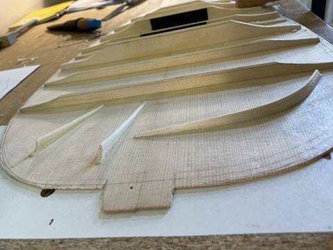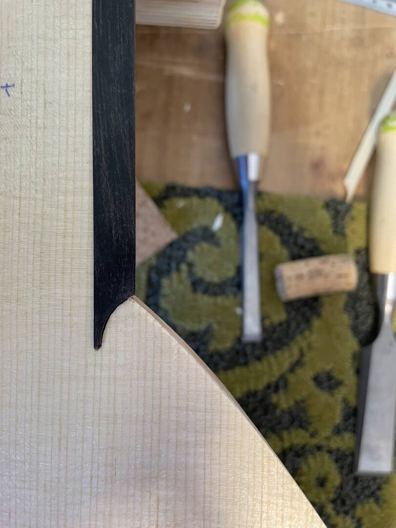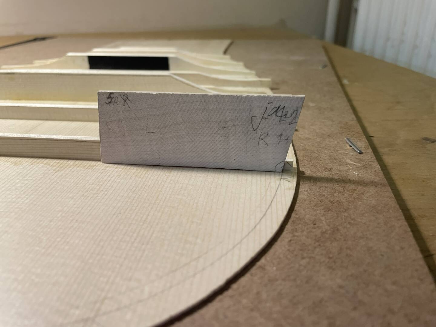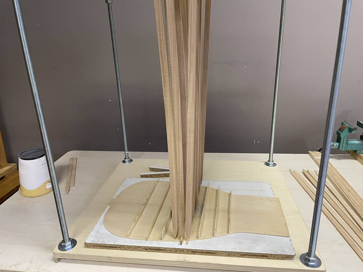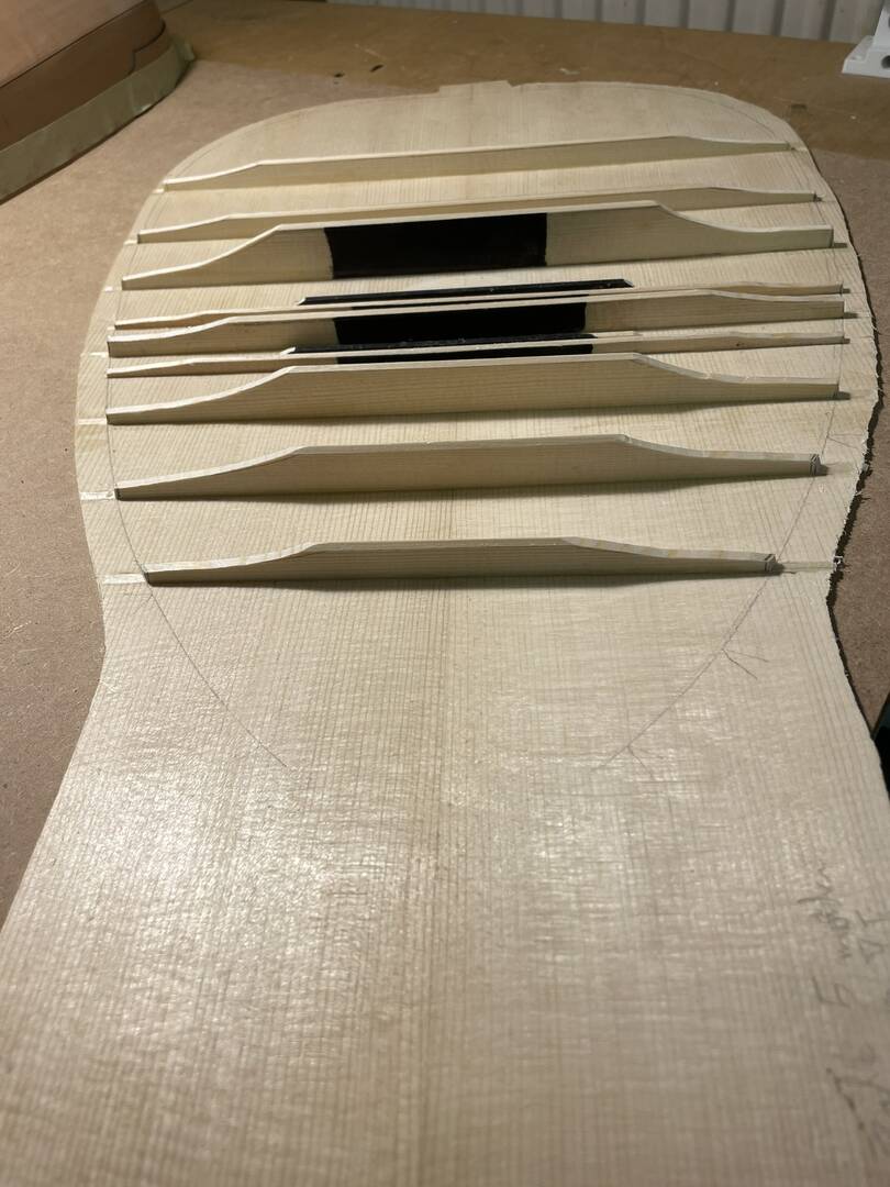 I also add some sound bars on the underside of the top, one being the bass bar and has a steep curve.