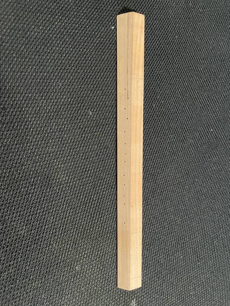 We do need to make sure we drill the holes perpendicular to the centreline, not the sides of the pegbox, as the pegbox sides are tapered.