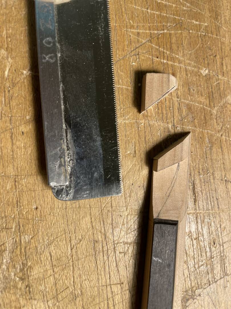 The cut stops at 5 mm of the top the neck. and the bulk is removed carfully with a chisel and mallet