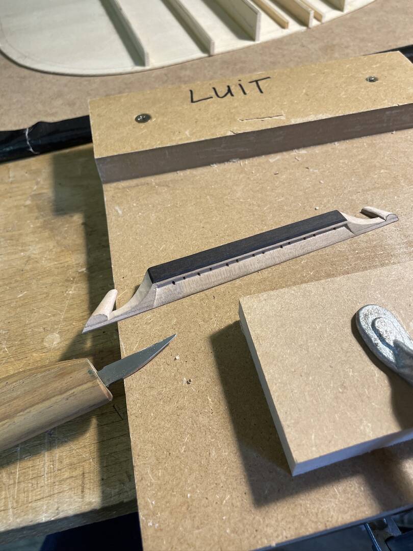 But that bridge is now finished and we can almost start fitting it to the soundboard, but first I need to finish shaping the braces...
