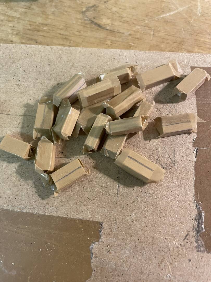 I first start by making tiny blocks, that will help supporting the top , so the top would not fold and crack when applying masking tape with some decisive force.