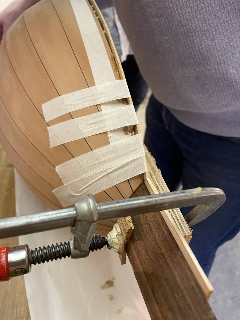 To clamp both ribs ( and the veneer too ) I use normal masking tape.