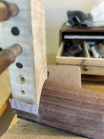 Next step, is to veneer the neck 's back to reinforce it and make it look nice.