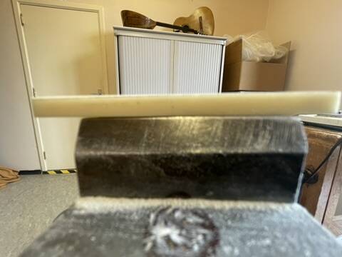 Then I start on flattening the top edge of the bowl, very carefully with a light blockplane. The shell is very vulerable still and utmost attention must be given in order not to create tearout and cracks.