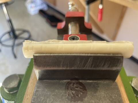 This is done on a sacrificial jig, because we are going to shape the the jig together with the back of the neck. You'll see why in a moment.