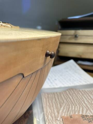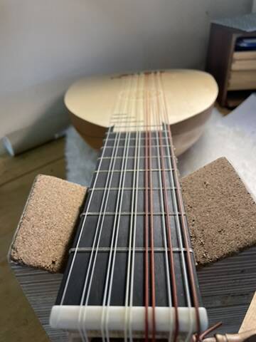 One thing still to do, on a lute there are a few wodden frets installed on the top, where the neck meets the body.