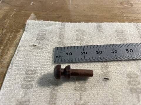With a firm sideways tap of a hammer, I drive the pin into the top